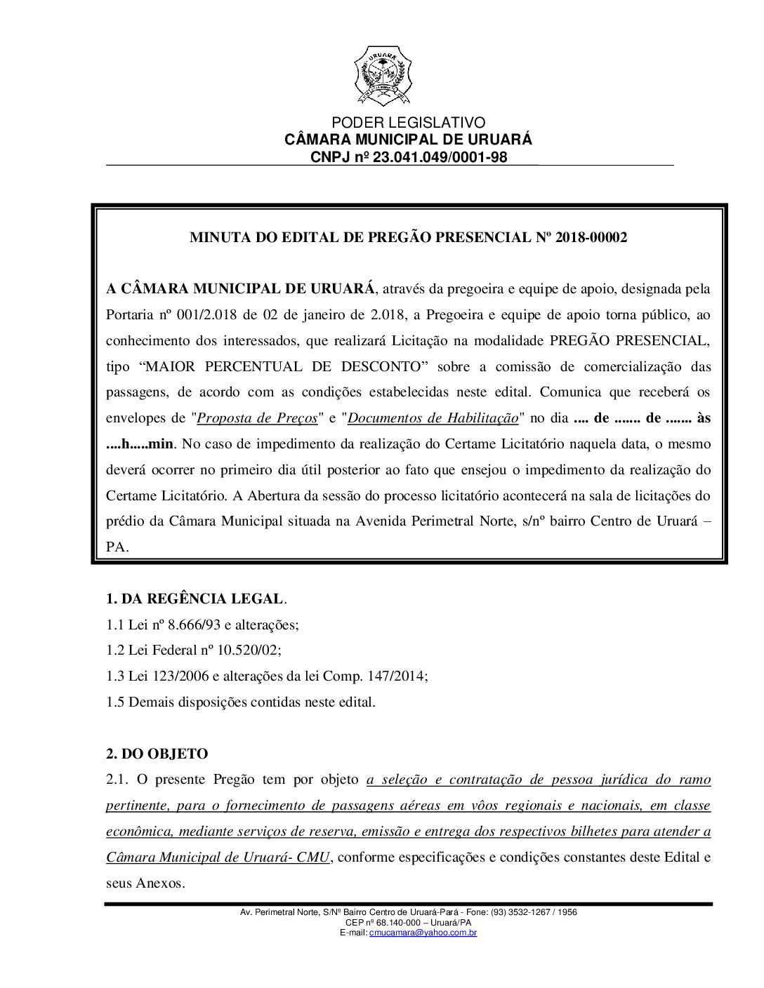 MINUTA DO EDITAL DE PREGAO PRESENCIAL Nm 2018-00002